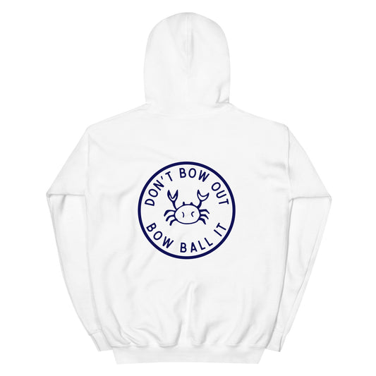 Unisex Hoodie in White: Bow Ball It | R,W&B