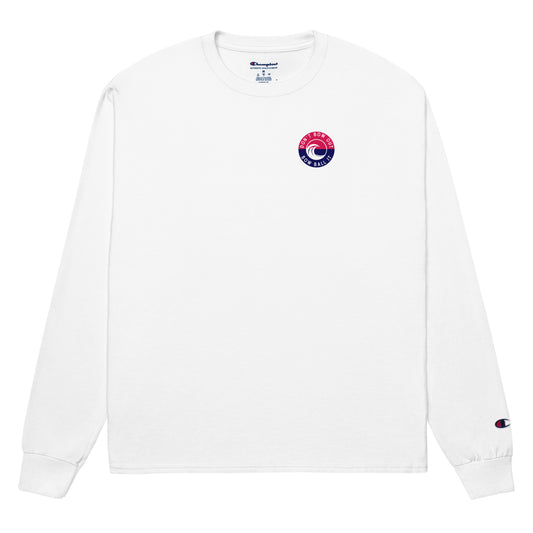 Men's Champion Long Sleeve Shirt (White): Bow Ball It | Waves