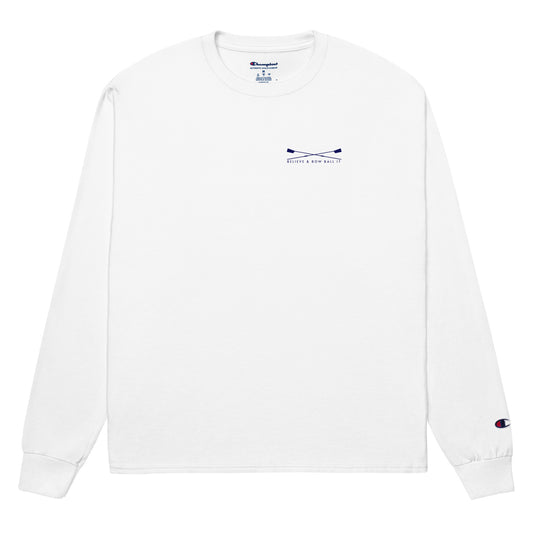 Men's Champion Long Sleeve Shirt (White): Believe & Bow Ball It