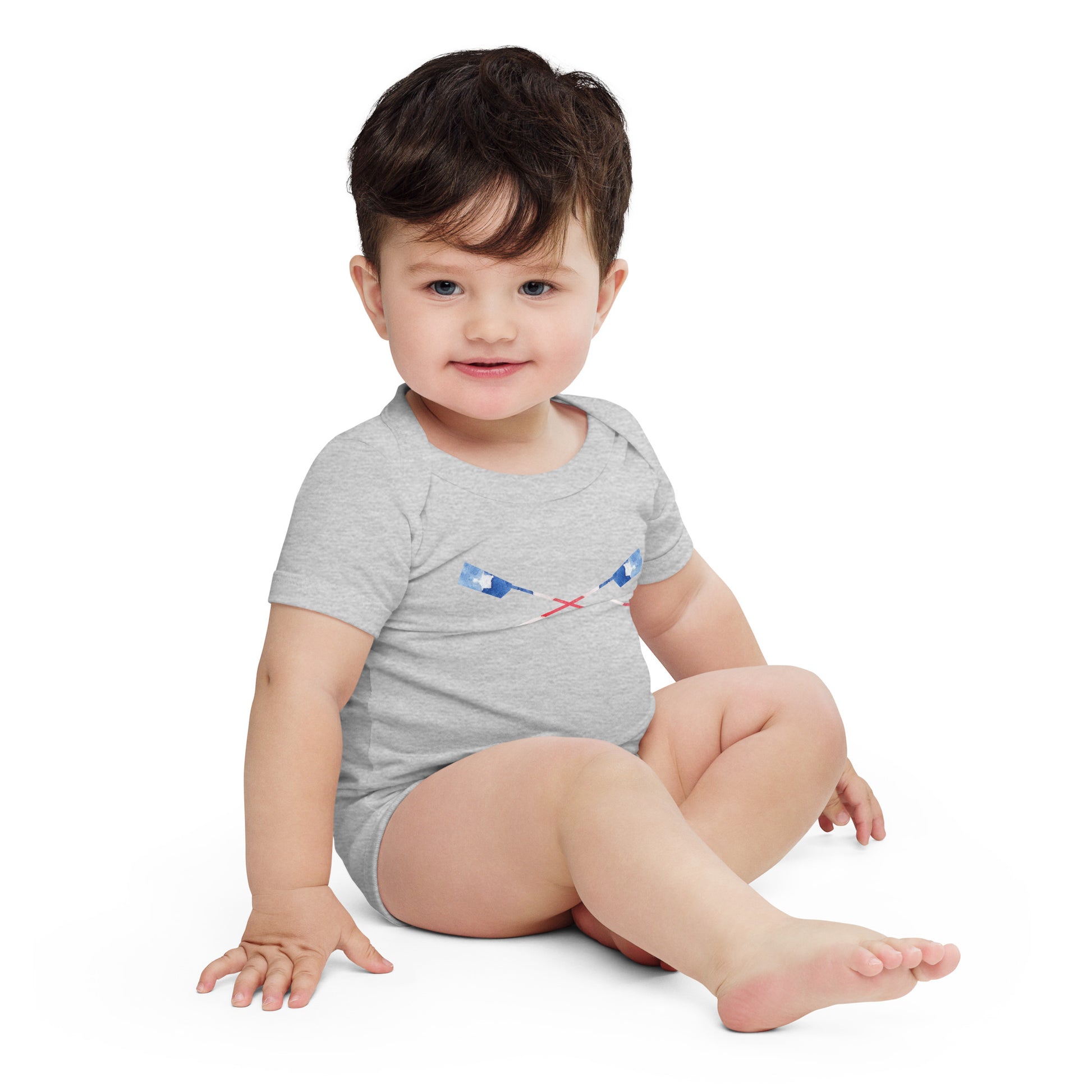 God Bless America. 🇺🇸 Our 100% cotton onesie has a three snap leg closure for easy changing, a comfortable envelope neckline, and oars featuring our American Love design. Precious, practical, and patriotic. 🇺🇸