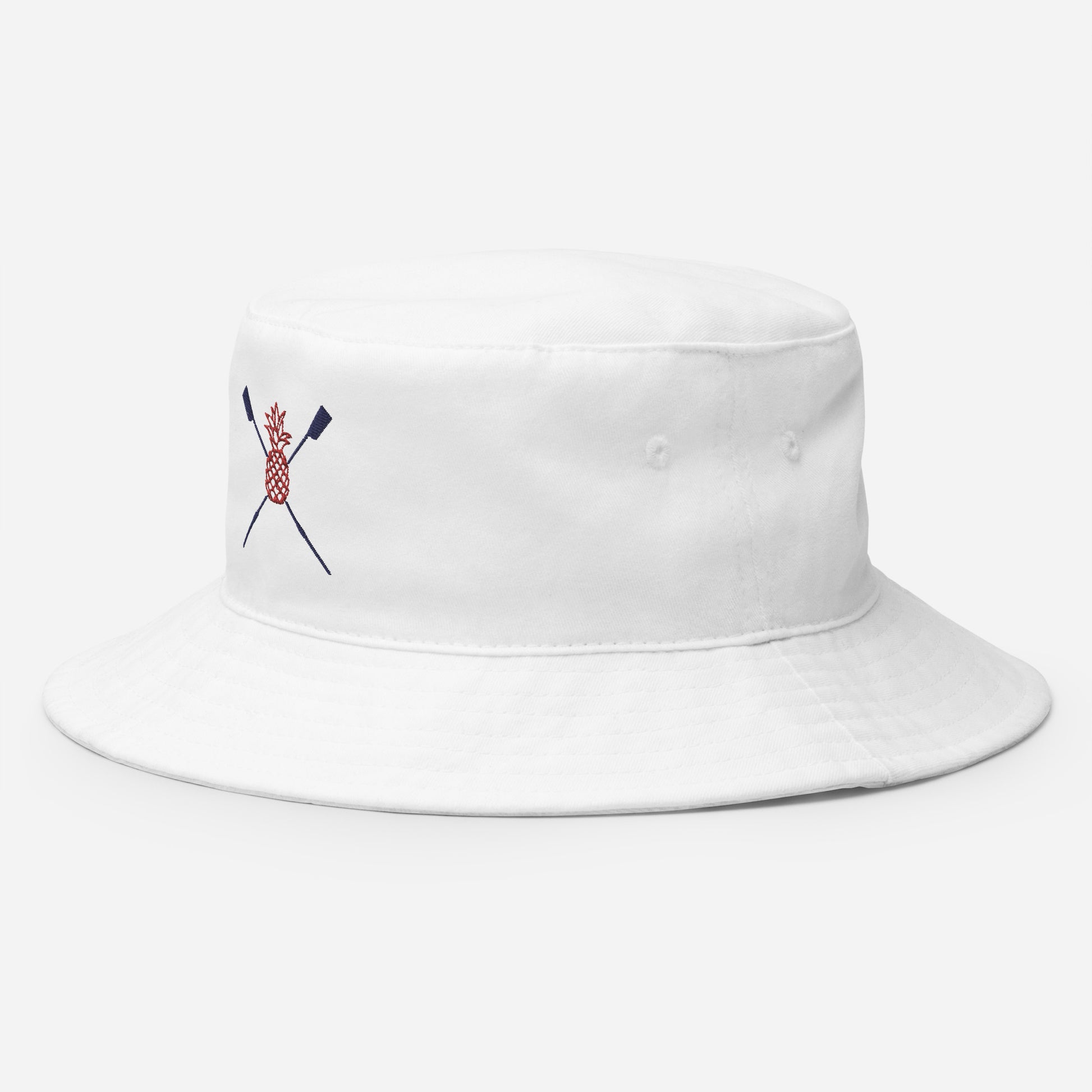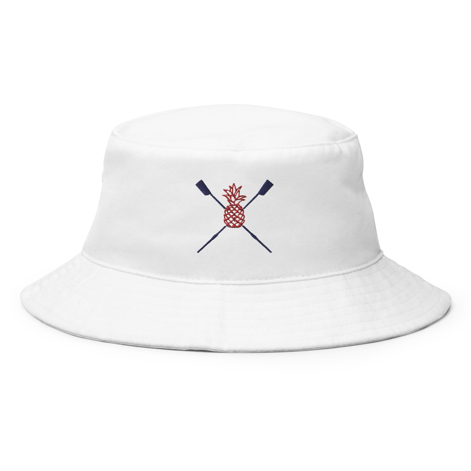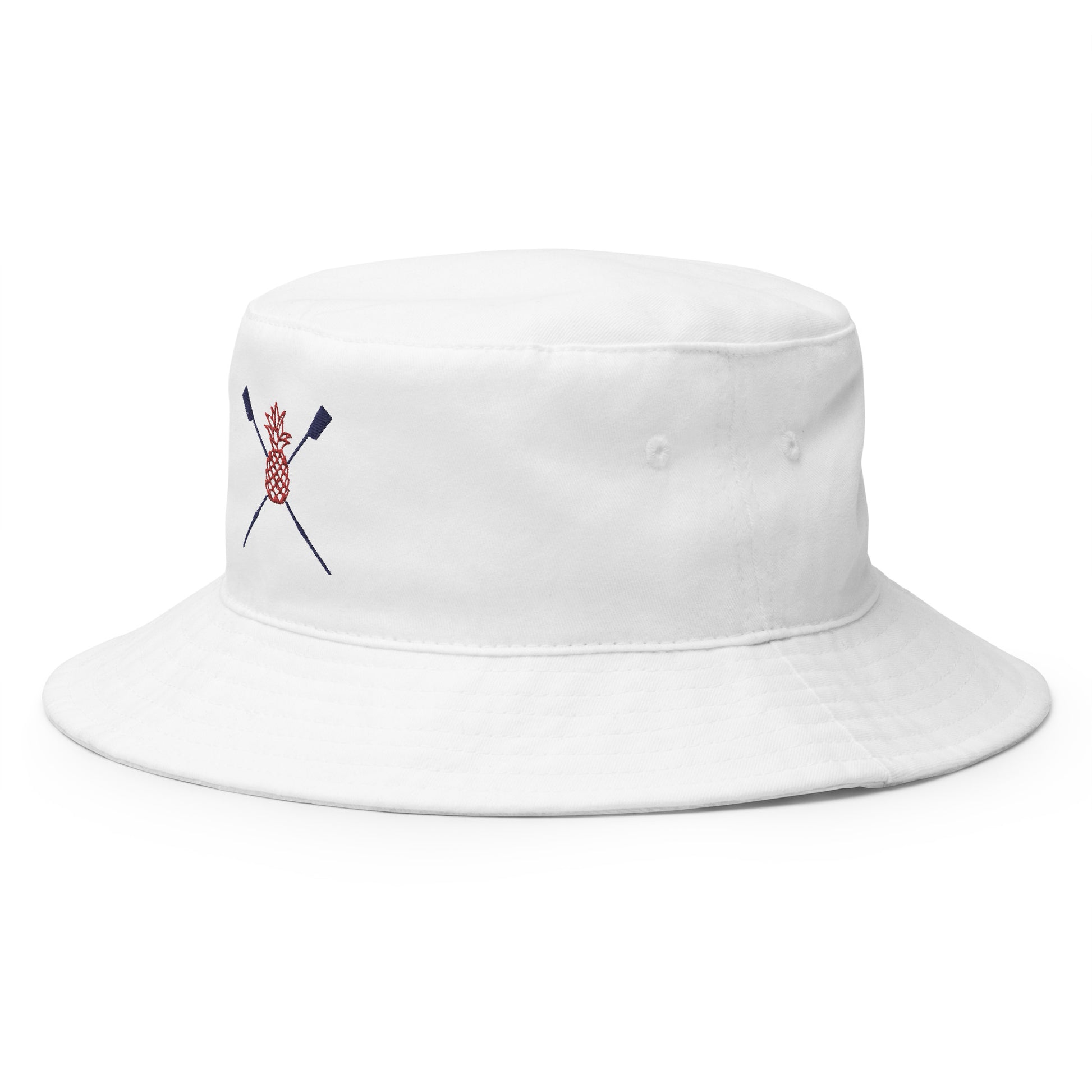 Combine practicality, comfort, and style in one. Keep the sun out of your eyes with this 100% cotton twill bucket hat with embroidered Bow Ball logo in red and navy. Cotton fabric and sewn eyelets are sure to help you stay cool. Great for regattas - get one for your whole team.