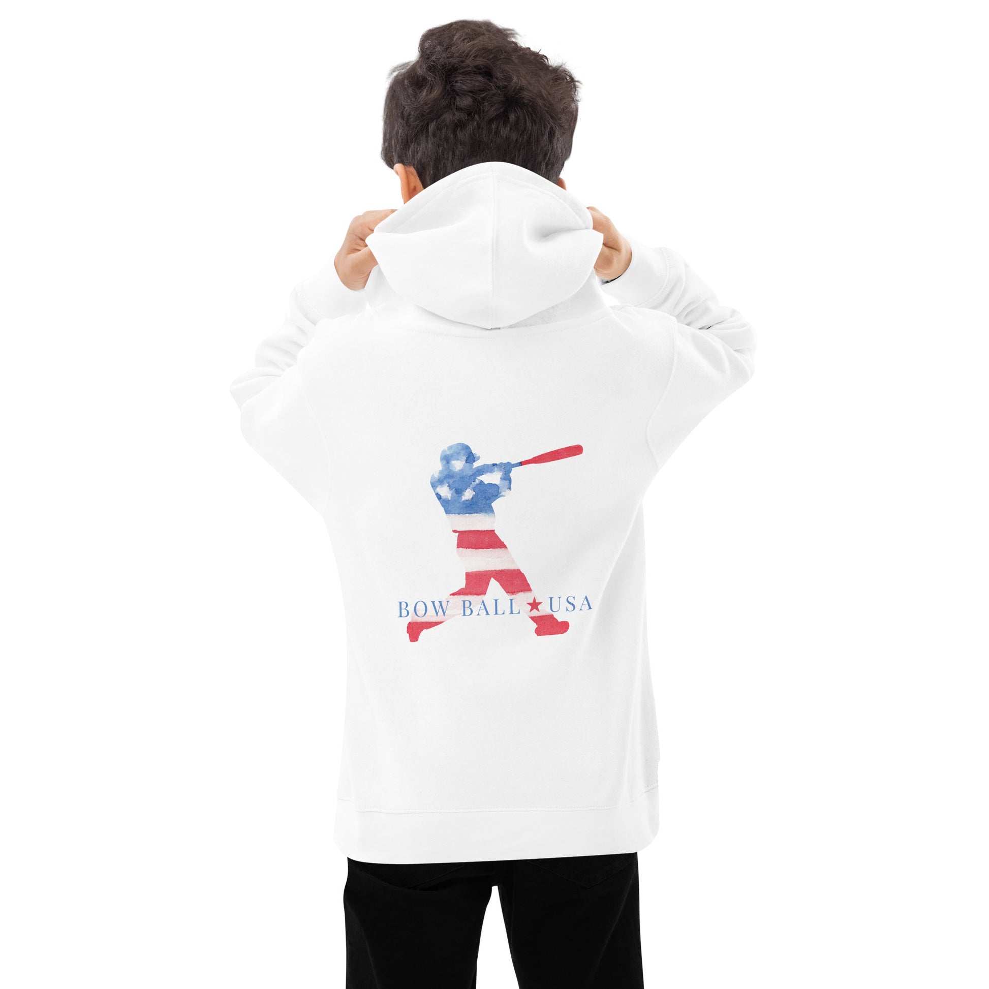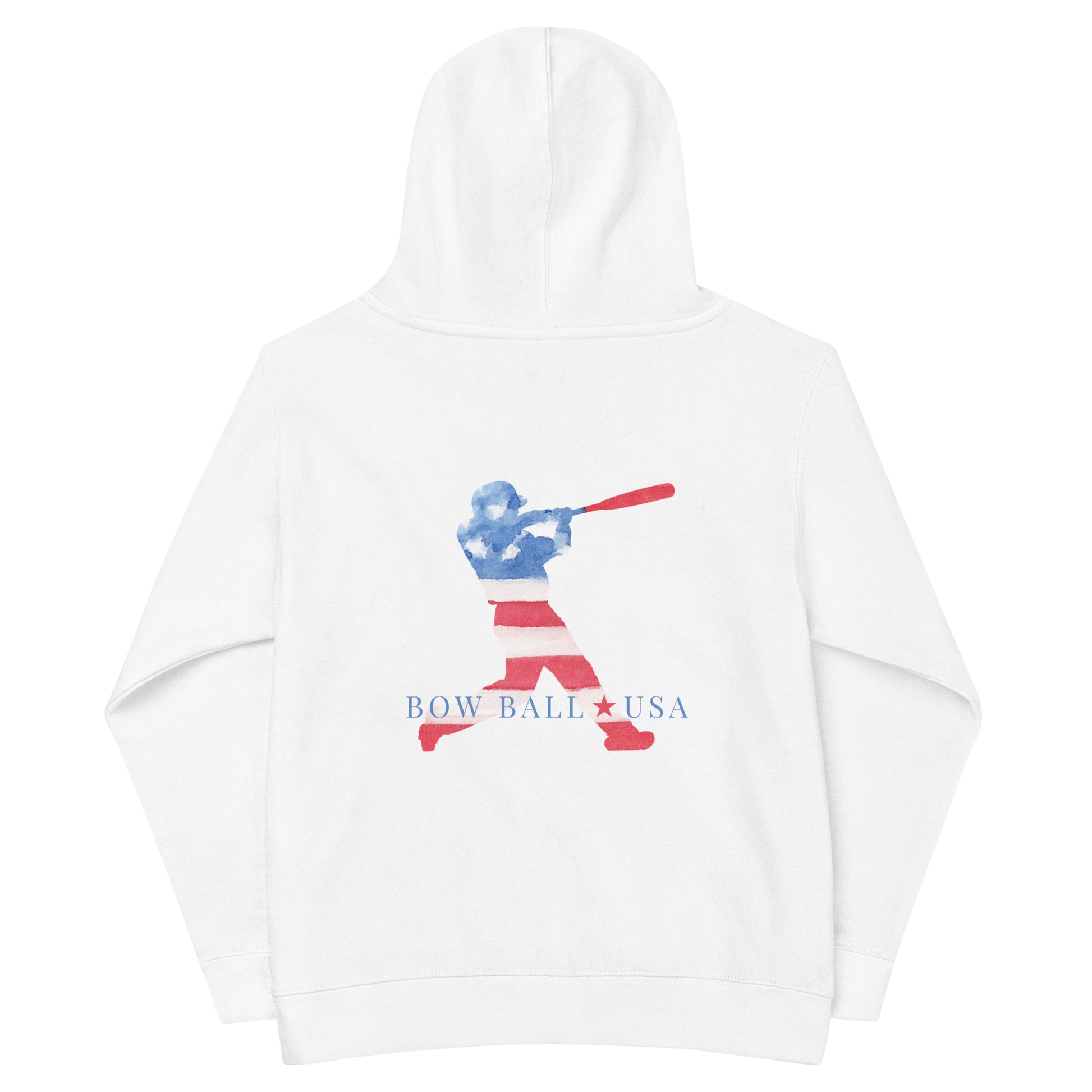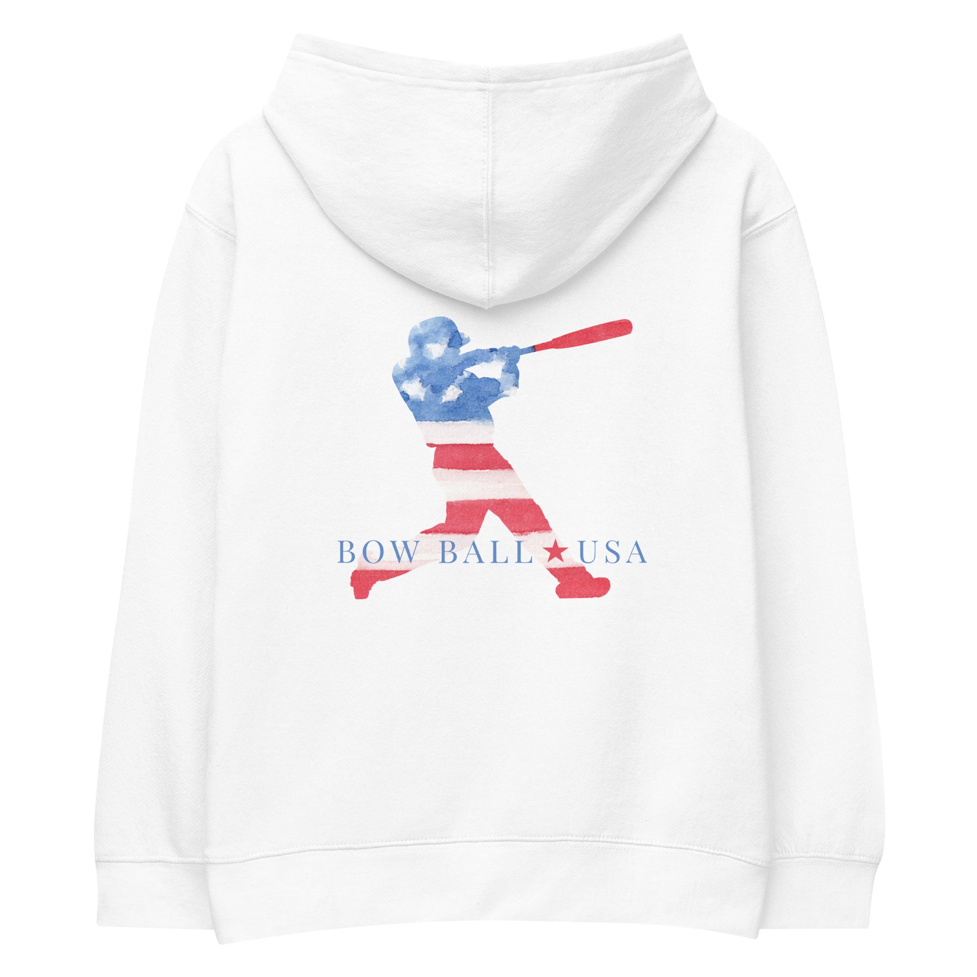 This soft and cozy fleece hoodie will become a go-to favorite for the children in your life. Made from durable material to ensure a long-lasting performance. Features All-American Baseball 🇺🇸 design on the back. May the children who wear this hoodie know they are loved. Bow Ball is cheering for them. #bowballit