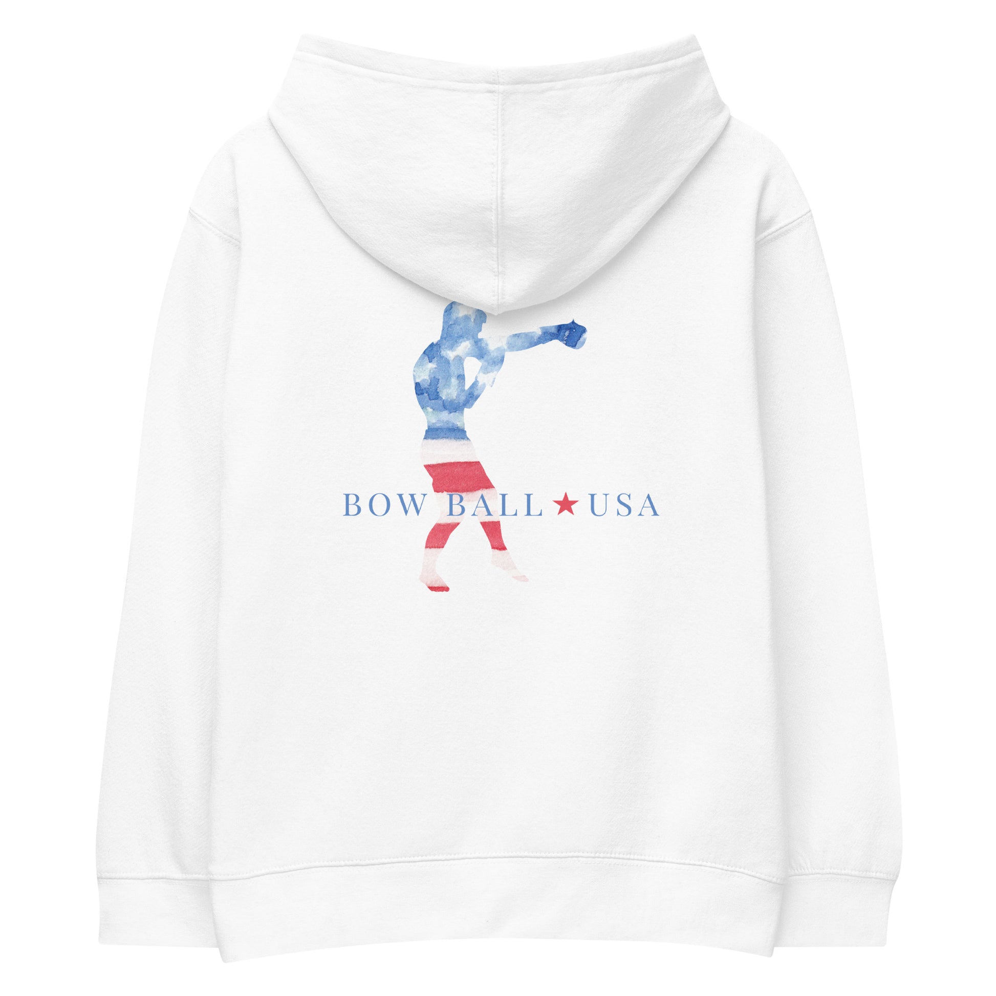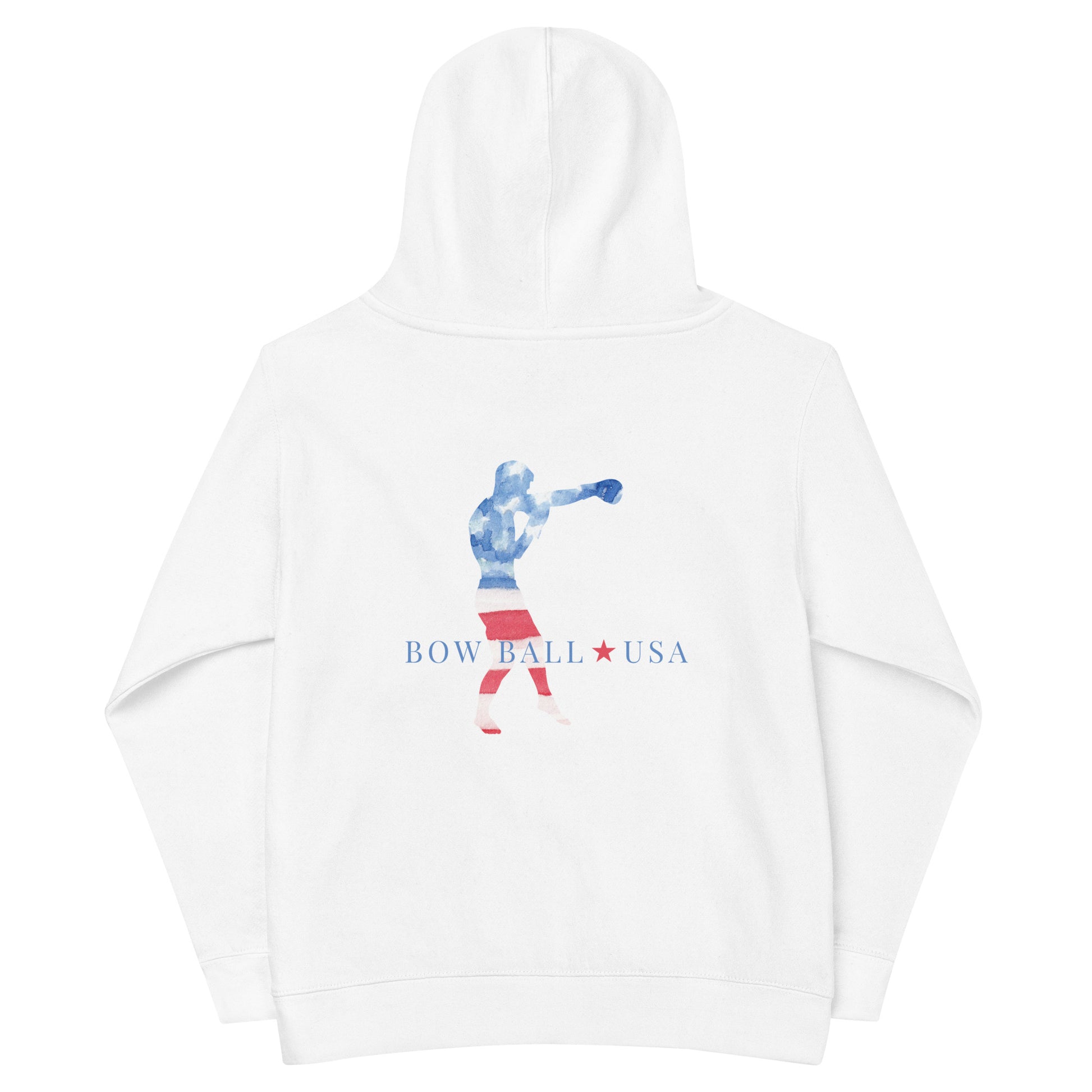 This soft and cozy fleece hoodie will become a go-to favorite for the children in your life. Made from durable material to ensure a long-lasting performance. Features All-American Boxing [Male] 🇺🇸 design on the back. May the children who wear this hoodie know they are loved. Bow Ball is cheering for them. #bowballit
