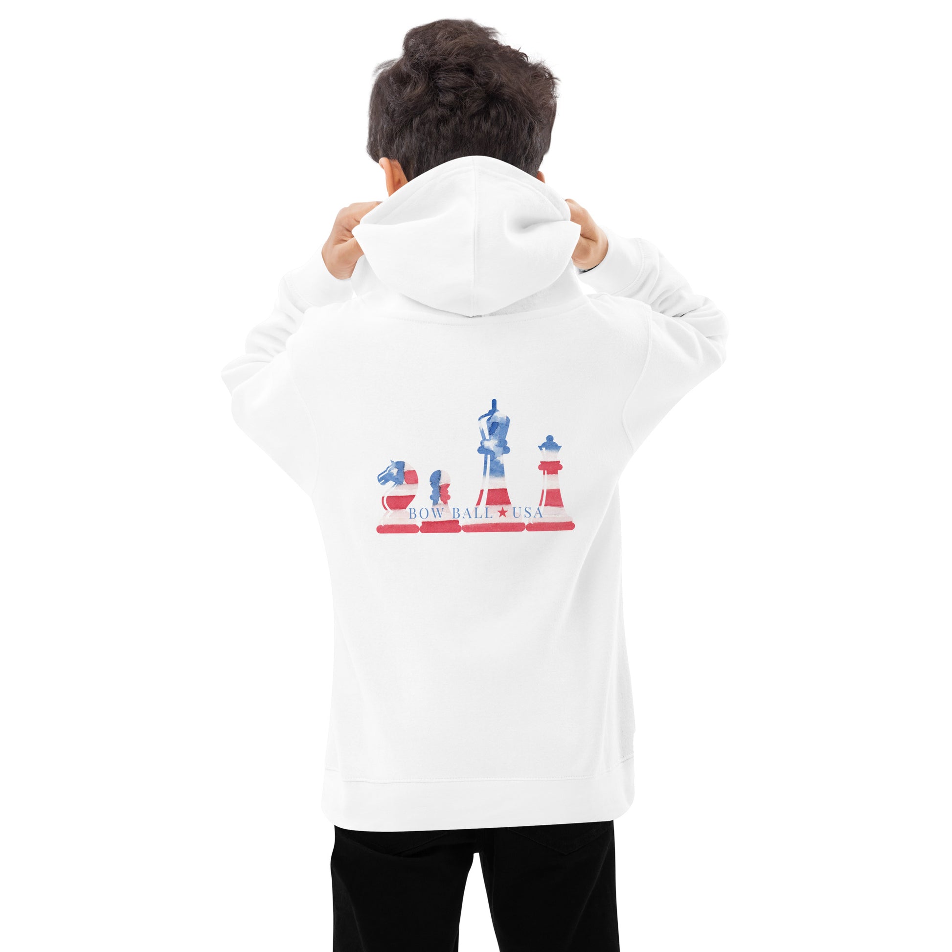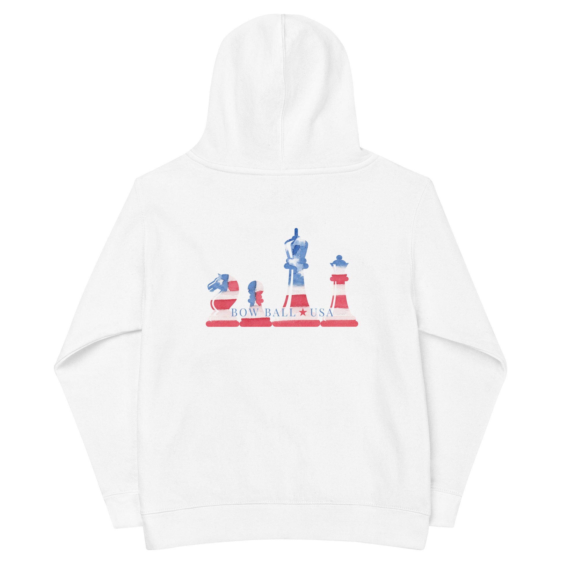 This soft and cozy fleece hoodie will become a go-to favorite for the children in your life. Made from durable material to ensure a long-lasting performance. Features All-American Chess 🇺🇸 design on the back. May the children who wear this hoodie know they are loved. Bow Ball is cheering for them.