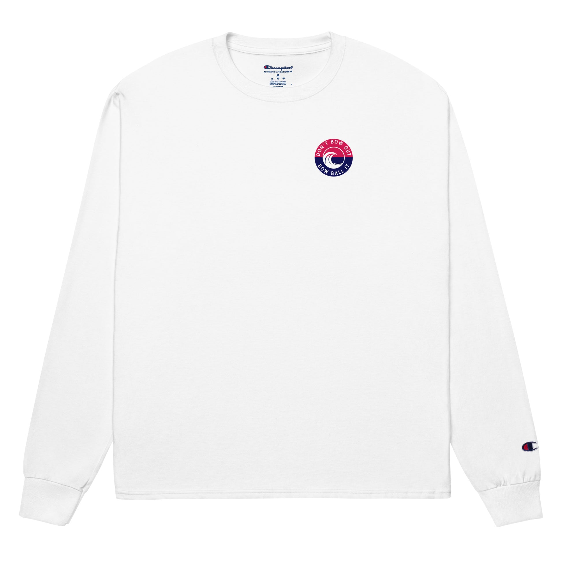 Men's Champion Long Sleeve Shirt (White): Bow Ball It | R, W & B