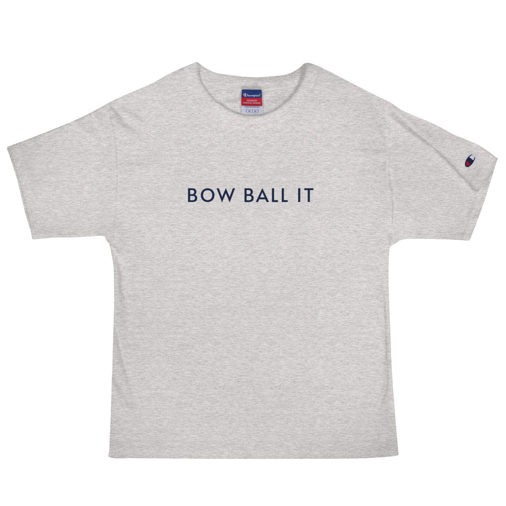 Elevate your wardrobe with this classic Champion t-shirt featuring Bow Ball It on the front and Bow Ball It | Crab on the back. The 100% cotton fabric and classic style are sure to make it your favorite tee. Don't Bow Out - Bow Ball It.