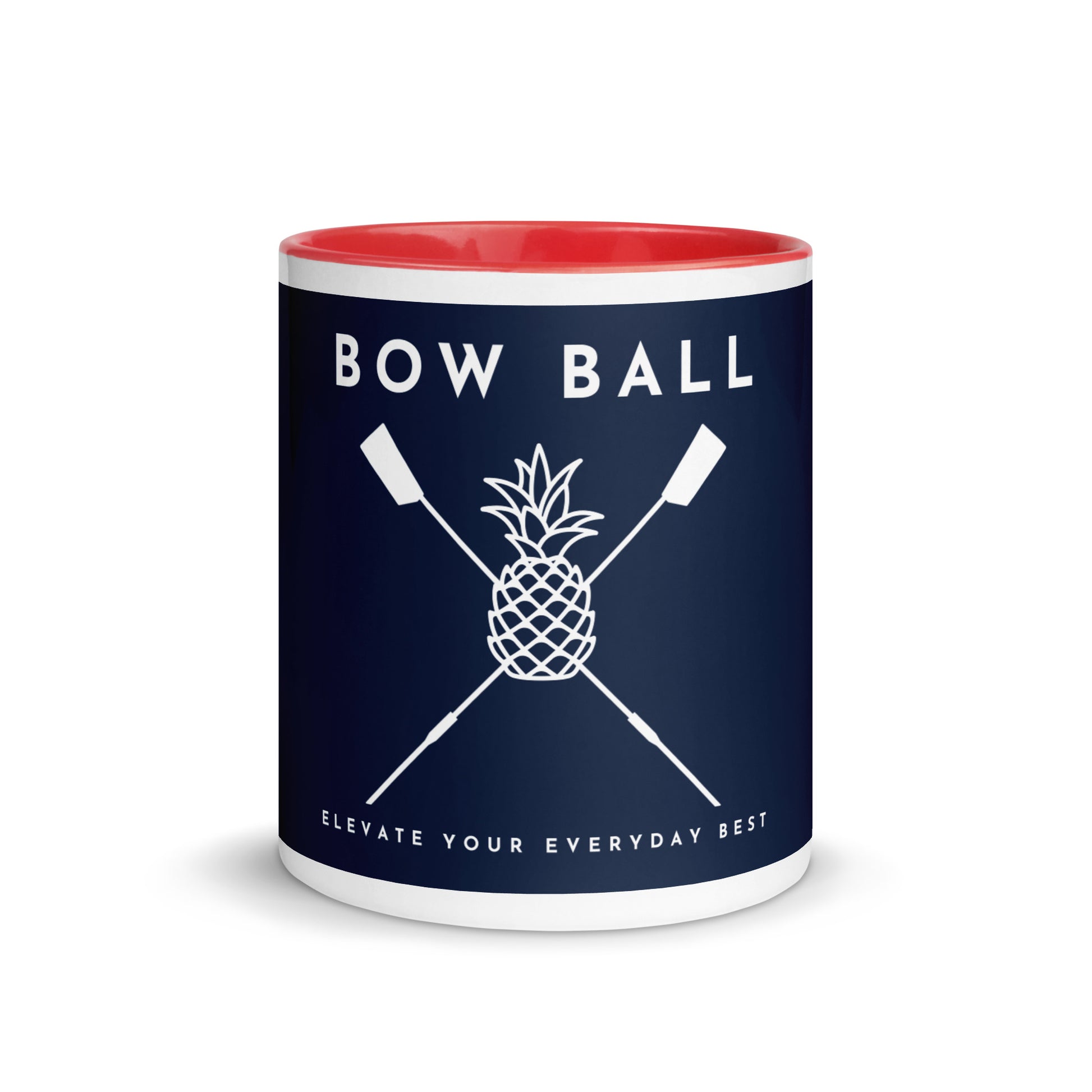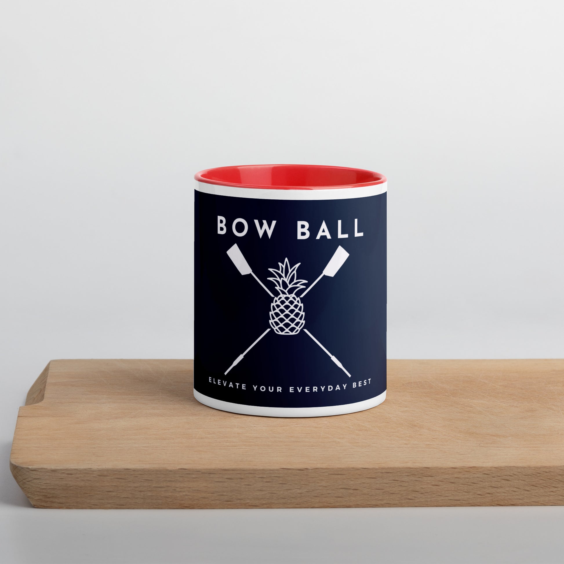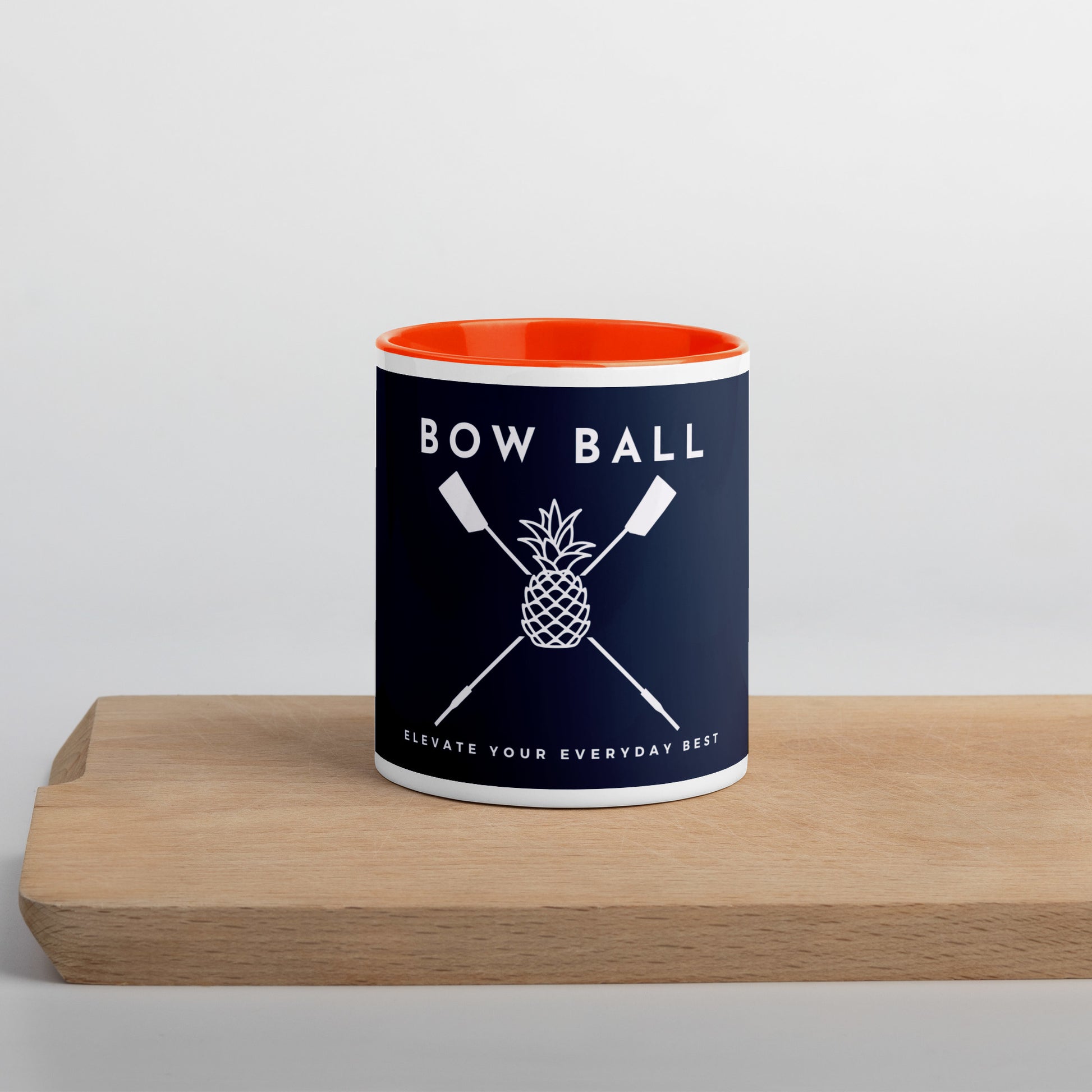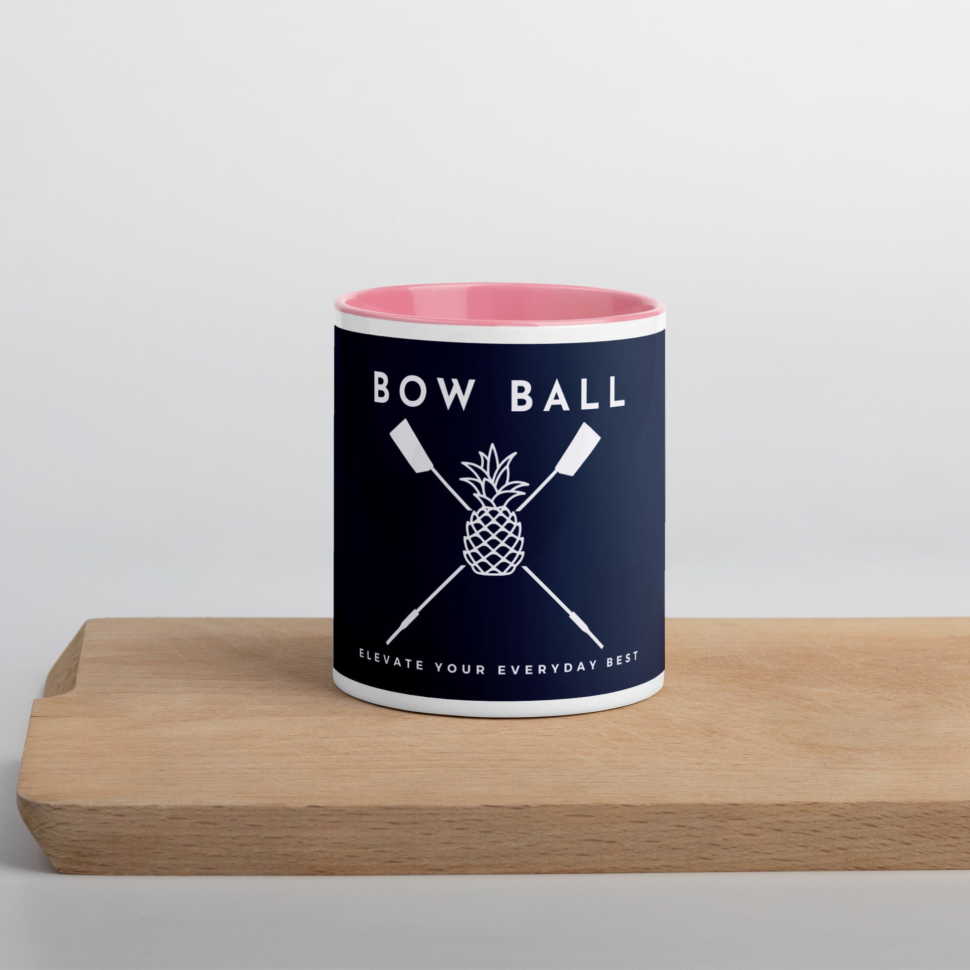 Elevate your mornings with this beautiful ceramic mug featuring the iconic Bow Ball logo. This mug has a colorful rim, handle, and a pop of color on the inside of the mug. Select your favorite from the available options. Designed to elevate your morning routine.