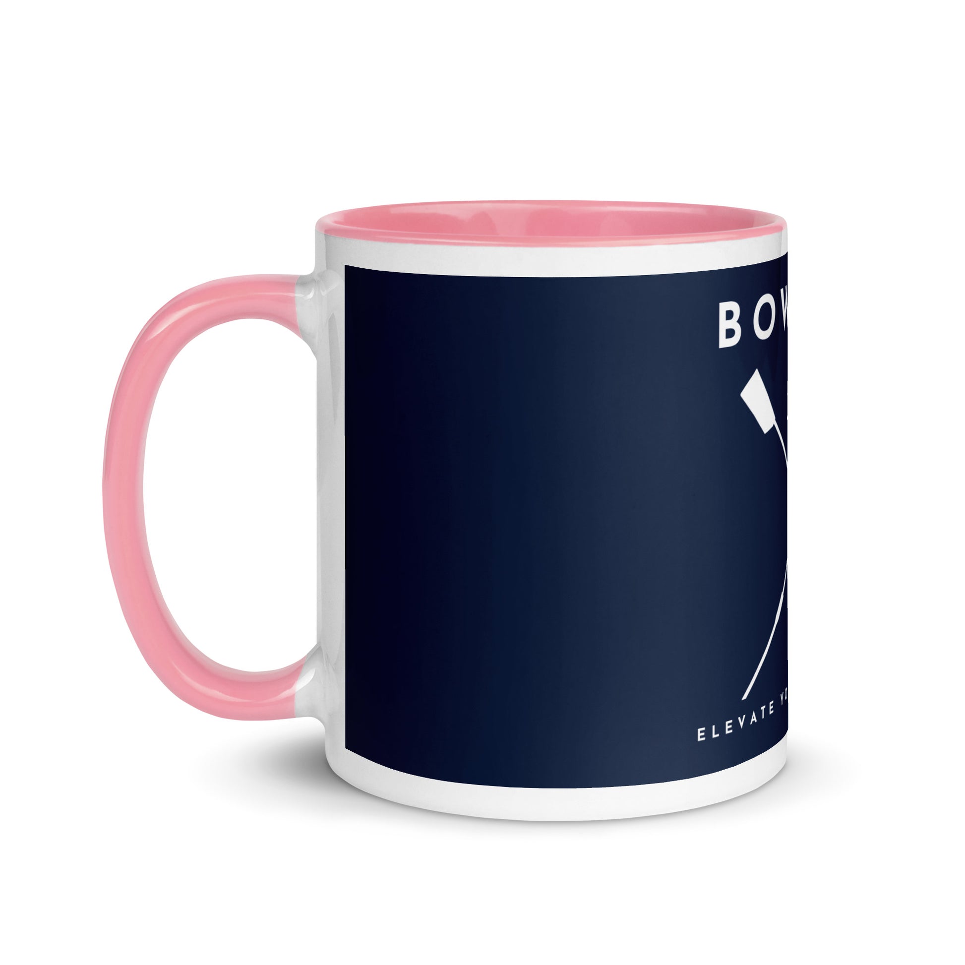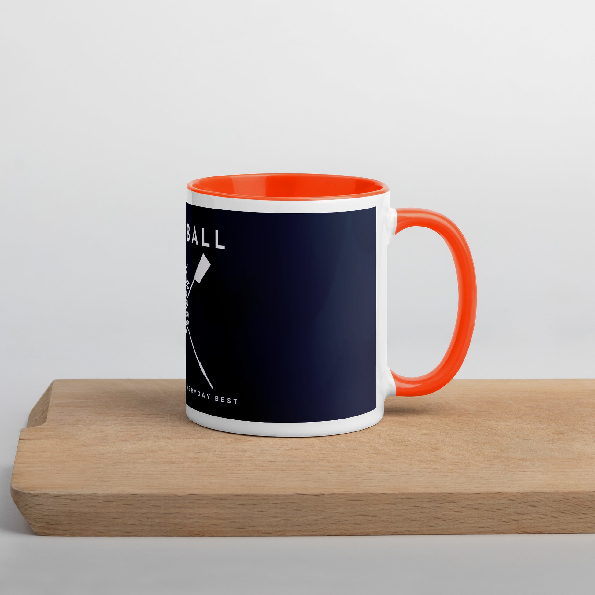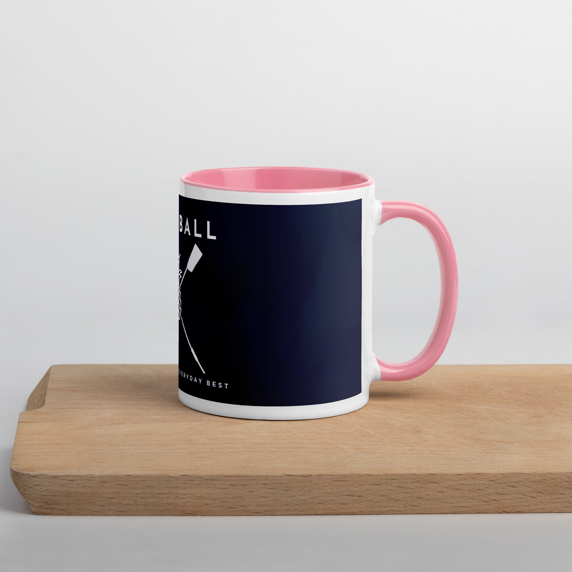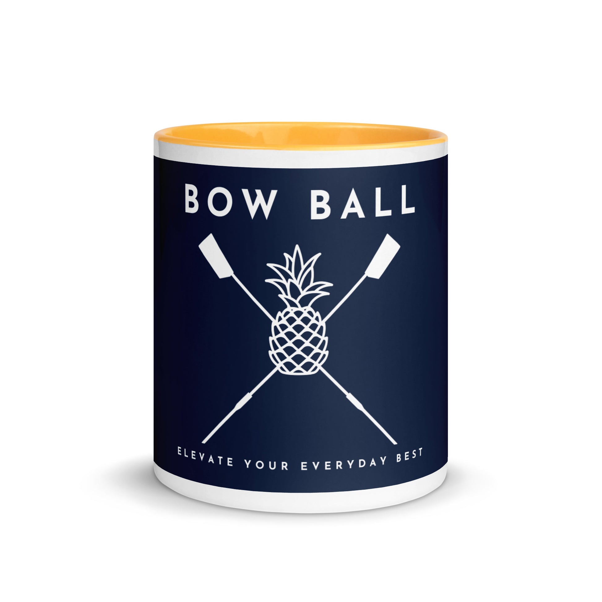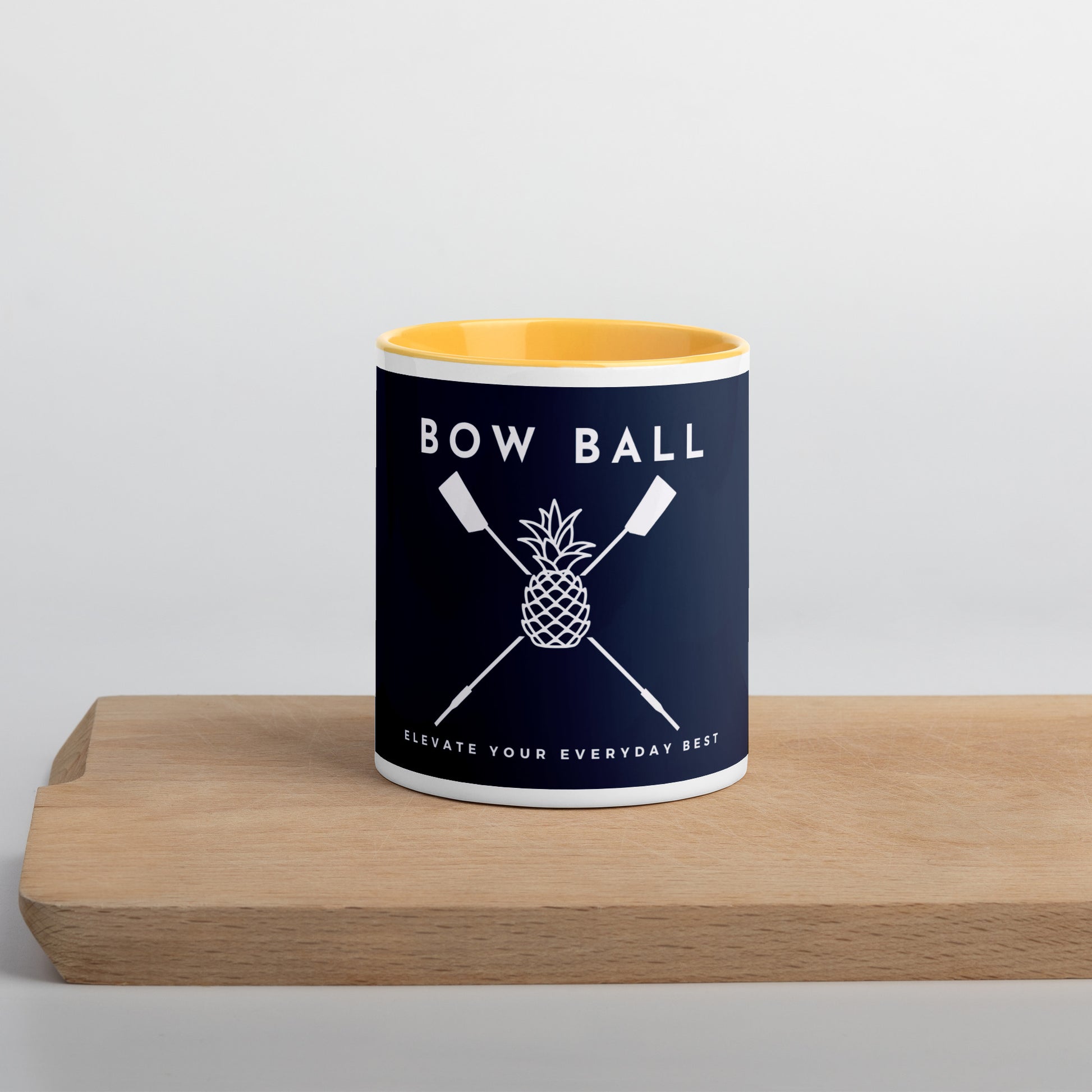 Elevate your mornings with this beautiful ceramic mug featuring the iconic Bow Ball logo. This mug has a colorful rim, handle, and a pop of color on the inside of the mug. Select your favorite from the available options. Designed to elevate your morning routine.