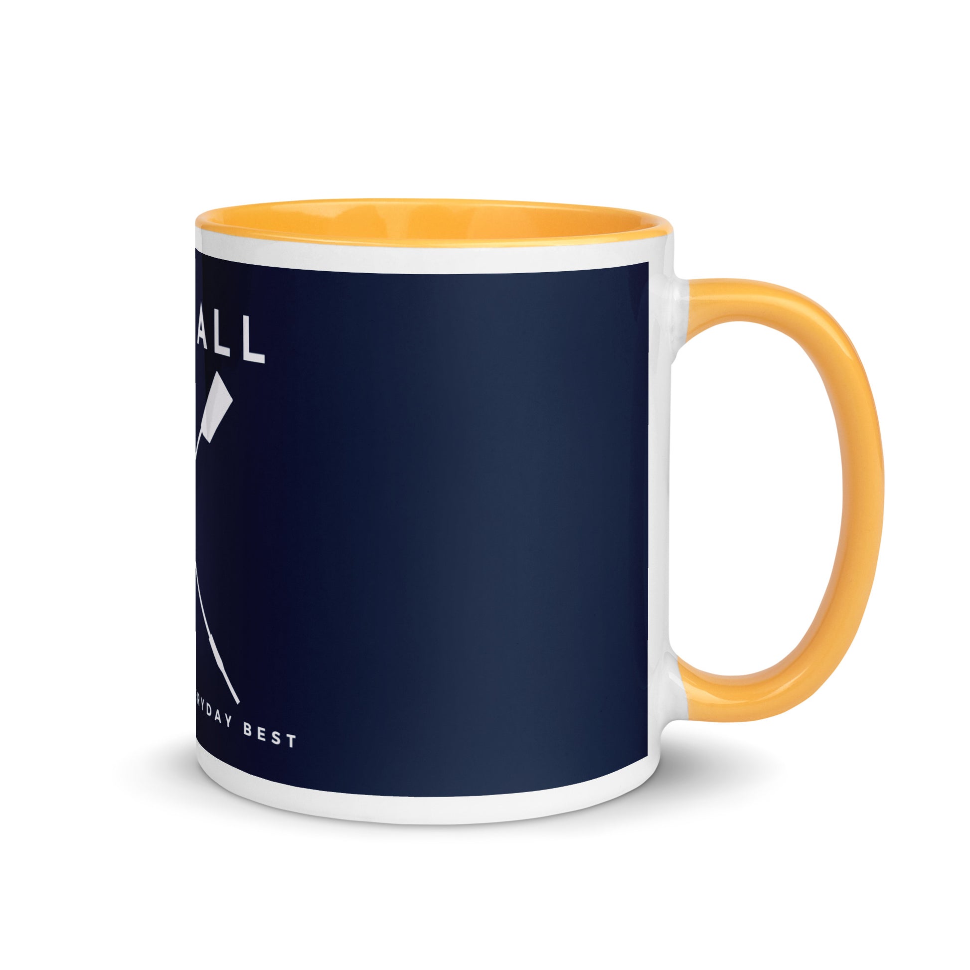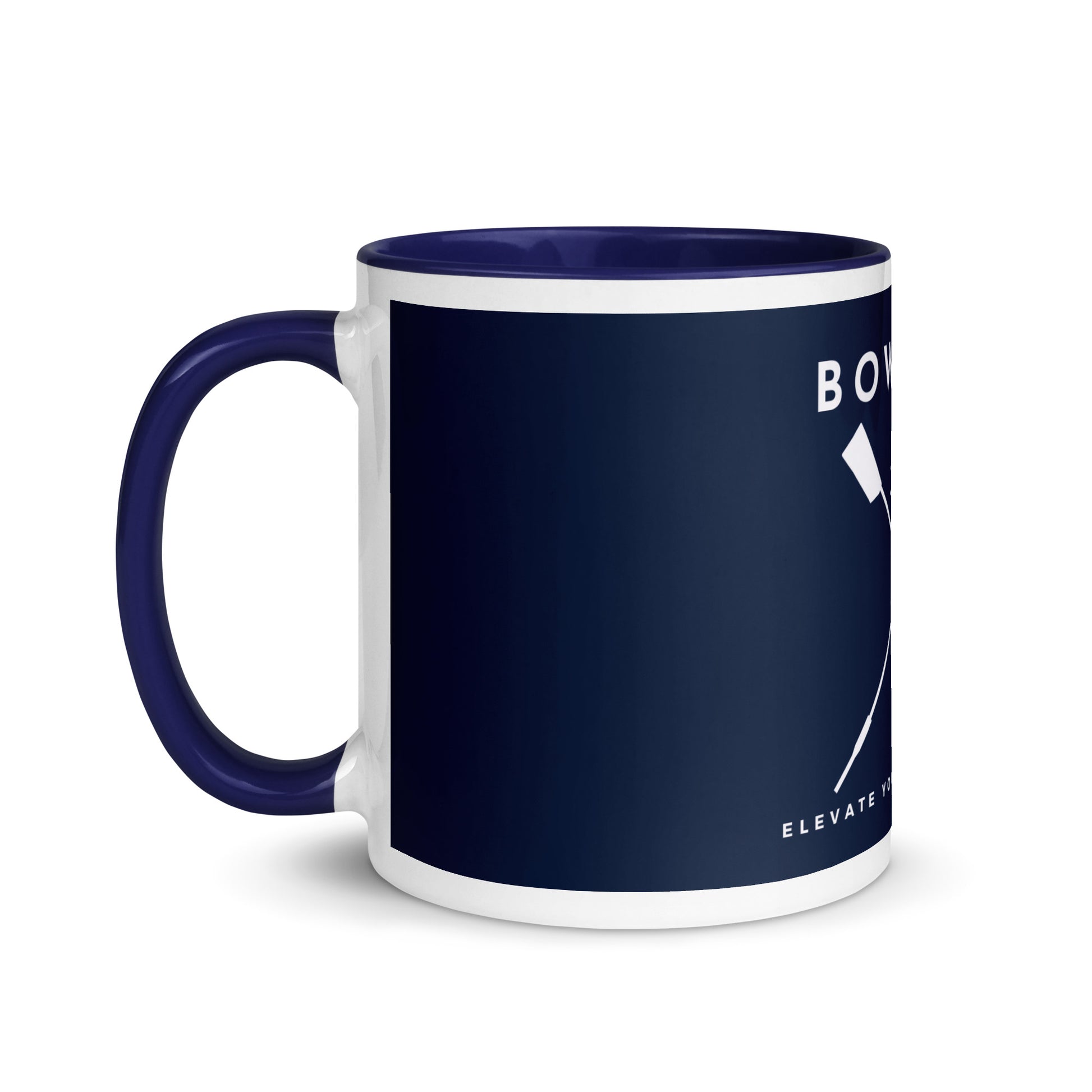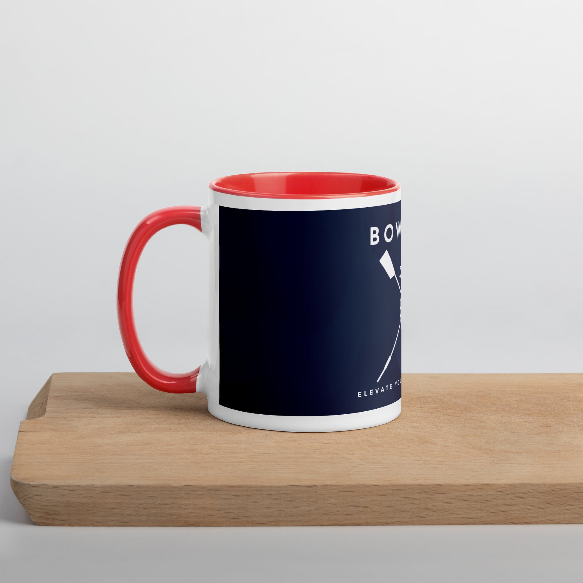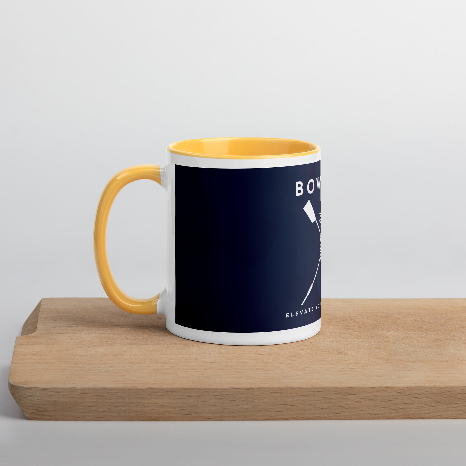 Elevate your mornings with this beautiful ceramic mug featuring the iconic Bow Ball logo. This mug has a colorful rim, handle, and a pop of color on the inside of the mug. Select your favorite from the available options. Designed to elevate your morning routine.