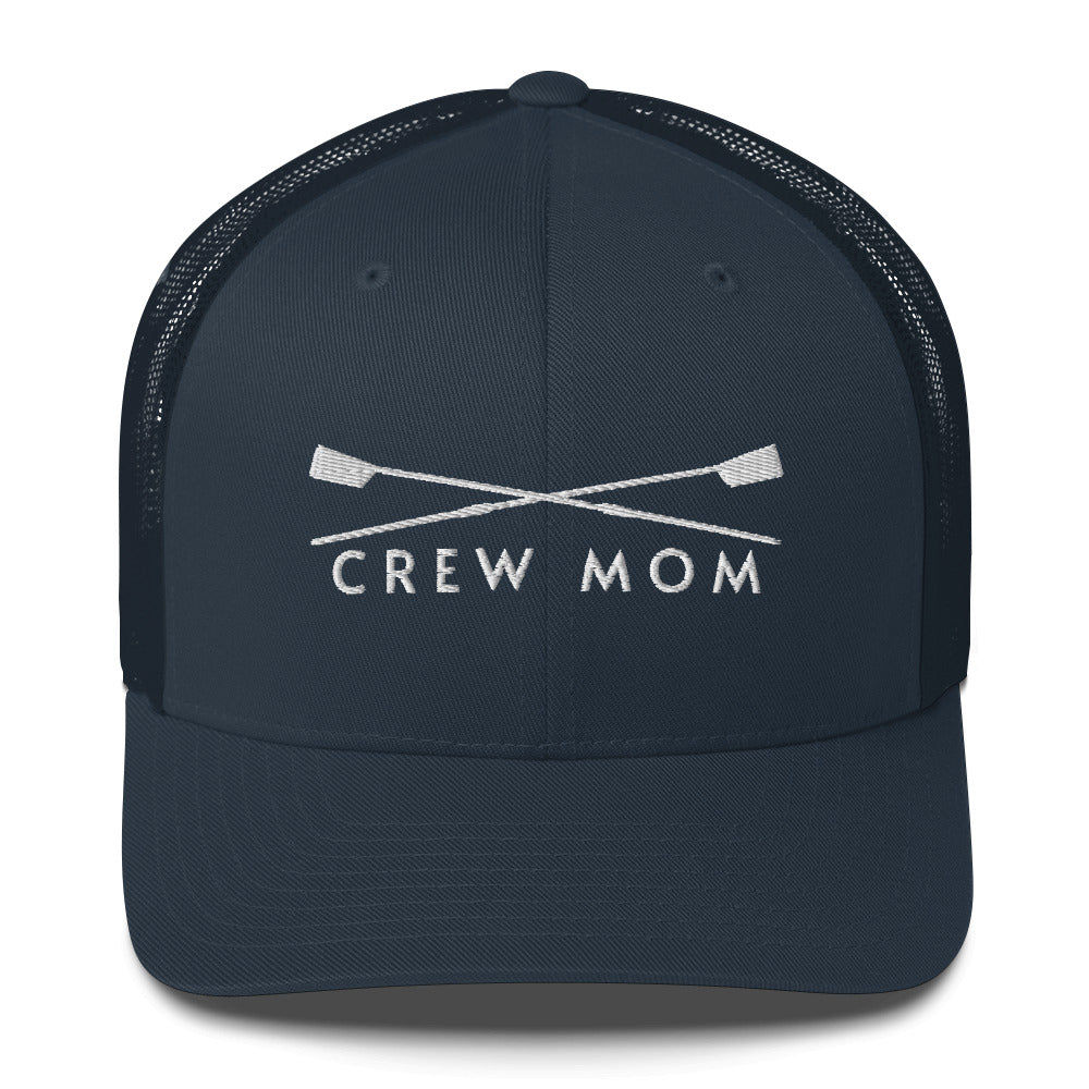 Our six-panel trucker caps with a mesh back will be a comfy and classic choice for Crew Moms. Crew Mom embroidered in white thread.