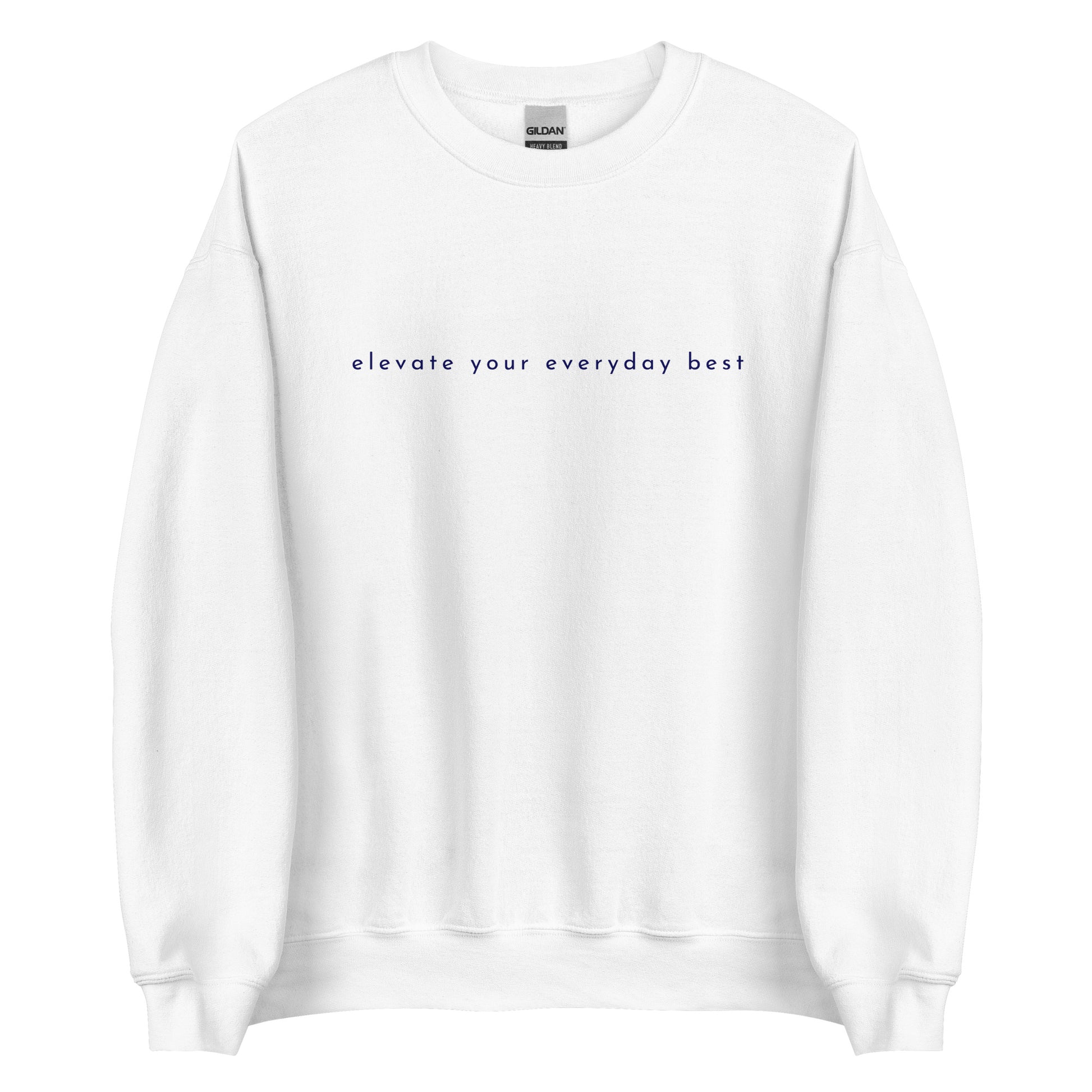 A sturdy and warm sweatshirt with "elevate your everyday best" printed on the front is bound to keep you warm in the colder months. A pre-shrunk, classic fit sweater that’s made with air-jet spun yarn for a soft feel. Features elevate your everyday best printed on front of sweatshirt.